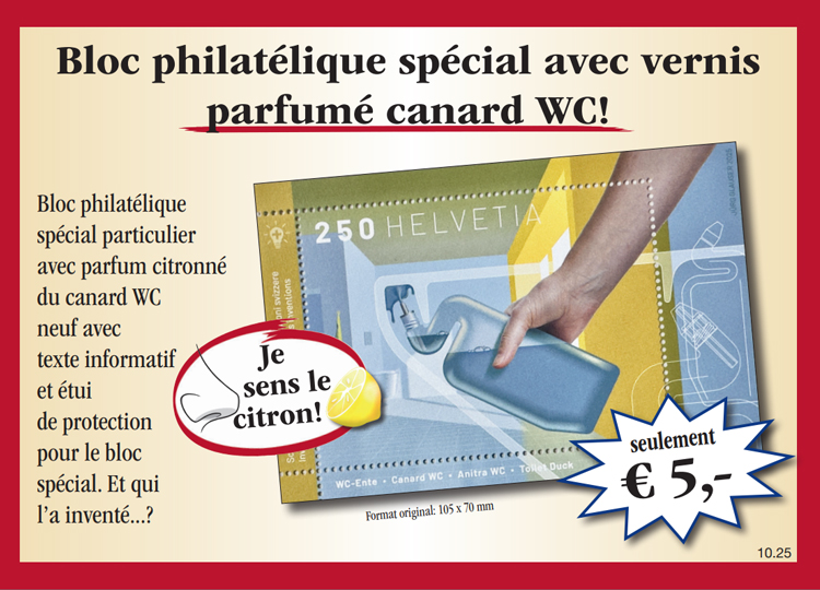 Panier Vous n'avez pas encore d'article dans votre panier. Le bloc philatélique spécial avec vernis canard WC de Suisse! Procurez-vous dès aujourd'hui le bloc philatélique spécial avec vernis canard WC de Suisse au prix spécial de seulement € 5,- et recevez à rythme mensuel d'autres émissions de cette collection à l'examen et sans obligation d'achat. A chaque envoi, vous disposez d'un droit de restitution de 15 jours! 5,00 € TVA légale incluse Quantité: Participation aux frais d'envoi en sus (port, emballage, assurance) Ce produit ne peut être commandé que 5 fois par client. En cas de question, contactez notre service clientèle.