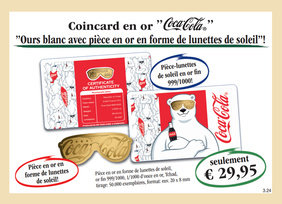 La coincard en or „CocaCola® - Ours blanc avec pièce en or lunettes de soleil“!