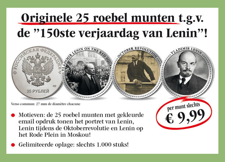 Winkelwagen U heeft nog geen artikelen in uw winkelwagen. De originele 25 roebel munt „Lenin op het Rode Plein“ met gekleurde email opdruk! Verzekert u zich vandaag nog van de originele 25 roebel munt „Lenin op het Rode Plein“ met gekleurde email opdruk voor de speciale prijs van slechts € 9,99! U heeft bij iedere levering een 14 dagen teruggaverecht! 9,99 € incl. wettelijke BTW Aantal: Excl. aandelige verzendkosten Dit artikel kan slechts 5 keer per klant besteld worden. Bij vragen graag contact opnemen met onze klantenservice. De originele 25 roebel munt „Oktoberrevolutie“ met gekleurde email opdruk! Verzekert u zich vandaag nog van de originele 25 roebel munt „Oktoberrevolutie“ met gekleurde email opdruk voor de speciale prijs van slechts € 9,99! U heeft bij iedere levering een 14 dagen teruggaverecht! 9,99 € incl. wettelijke BTW Aantal: Excl. aandelige verzendkosten Dit artikel kan slechts 5 keer per klant besteld worden. Bij vragen graag contact opnemen met onze klantenservice. De originele 25 roebel munt „Vladimir Lenin“ met gekleurde email opdruk! Verzekert u zich vandaag nog van de originele 25 roebel munt „Vladimir Lenin“ met gekleurde email opdruk voor de speciale prijs van slechts € 9,99! U heeft bij iedere levering een 14 dagen teruggaverecht! 9,99 € incl. wettelijke BTW Aantal: Excl. aandelige verzendkosten Dit artikel kan slechts 5 keer per klant besteld worden. Bij vragen graag contact opnemen met onze klantenservice.