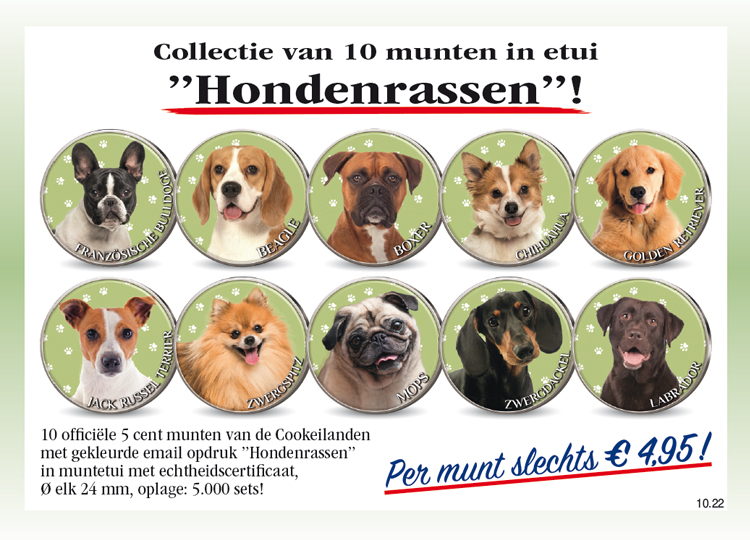 Winkelwagen U heeft nog geen artikelen in uw winkelwagen. De collectie van 10 munten „Hondenrassen“ in etui! Verzekert u zich vandaag nog van de collectie van 10 munten „Hondenrassen“ in etui, bestaande uit 10 officiële 5 cent munten van de Cookeilanden met gekleurde email opdruk en inclusief echtheidscertificaat, voor de speciale prijs van totaal slechts € 49,50! U heeft bij iedere levering een 14 dagen teruggaverecht! 49,50 € incl. wettelijke BTW Aantal: Excl. aandelige verzendkosten Dit artikel kan slechts 5 keer per klant besteld worden. Bij vragen graag contact opnemen met onze klantenservice.