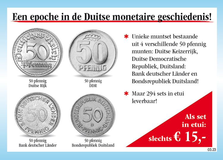 Winkelwagen U heeft nog geen artikelen in uw winkelwagen. De unieke 50 pfennig muntset „Een epoche in de Duitse monetaire geschiedenis“! Verzekert u zich vandaag nog van de unieke 50 pfennig muntset „Een epoche in de Duitse monetaire geschiedenis“ in etui, bestaande uit 4 verschillende 50 pfennig munten (Duitse Rijk, Duitse Democratische Republiek, Bank deutscher Länder en Bondsrepubliek Duitsland; munthuisteken wordt door ons uitgezocht) voor de speciale prijs van slechts € 15,-! U heeft bij iedere levering een 14 dagen teruggaverecht! 15,00 € incl. wettelijke BTW Aantal: Excl. aandelige verzendkosten Dit artikel kan slechts 5 keer per klant besteld worden. Bij vragen graag contact opnemen met onze klantenservice.