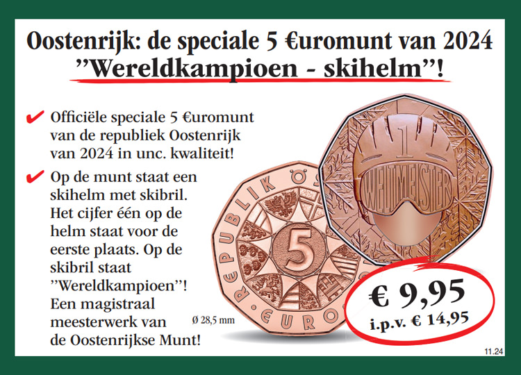 Winkelwagen U heeft nog geen artikelen in uw winkelwagen. De speciale 5 euromunt van Oostenrijk 2024 „Wereldkampioen – skihelm“! Verzekert u zich vandaag nog van de speciale unc. 5 euromunt van Oostenrijk 2024 „Wereldkampioen – skihelm“, bestaande uit puur koper, voor de speciale prijs van slechts € 9,95 i.p.v. € 14,95 en maandelijks een verdere uitgave uit deze verzameling vrijblijvend en zonder koopverplichting ter inzage. U heeft bij iedere levering een 14 dagen teruggaverecht! in plaats van (i.p.v.) 14,95 € 9,95 € incl. wettelijke BTW Aantal: Excl. aandelige verzendkosten Dit artikel kan slechts 5 keer per klant besteld worden. Bij vragen graag contact opnemen met onze klantenservice.