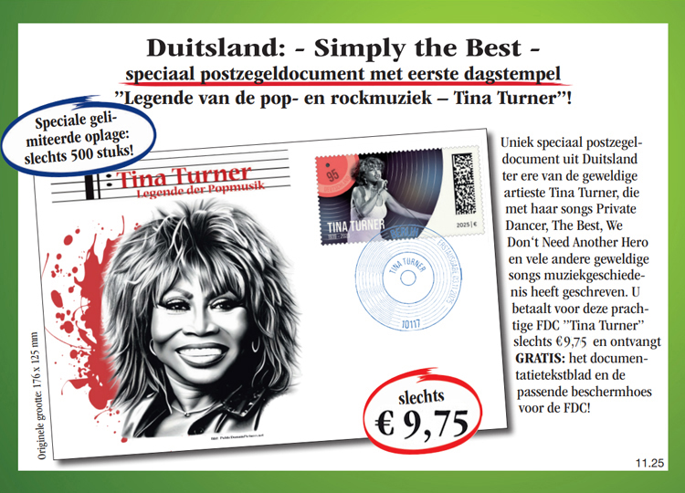 Winkelwagen U heeft nog geen artikelen in uw winkelwagen. De postfrisse speciale postzegelvel „Legende van de Pop & Rockmusik – Tina Turner“! Verzeker u nog vandaag van de postfrisse speciale postzegelvel „Legende van de Pop & Rockmusik – Tina Turner“ incl. informatief textblad en beschermhoes voor het postzegelvel voor de speciale prijs slechts € 9,75 en maandelijks een verdere uitgave uit deze verzameling vrijblijvend en zonder koopverplichting ter inzage. U heeft bij iedere levering een 14 dagen teruggaverecht! 9,75 € incl. wettelijke BTW Aantal: Excl. aandelige verzendkosten Dit artikel kan slechts 5 keer per klant besteld worden. Bij vragen graag contact opnemen met onze klantenservice. Misschien is het volgende ook interessant voor u!
